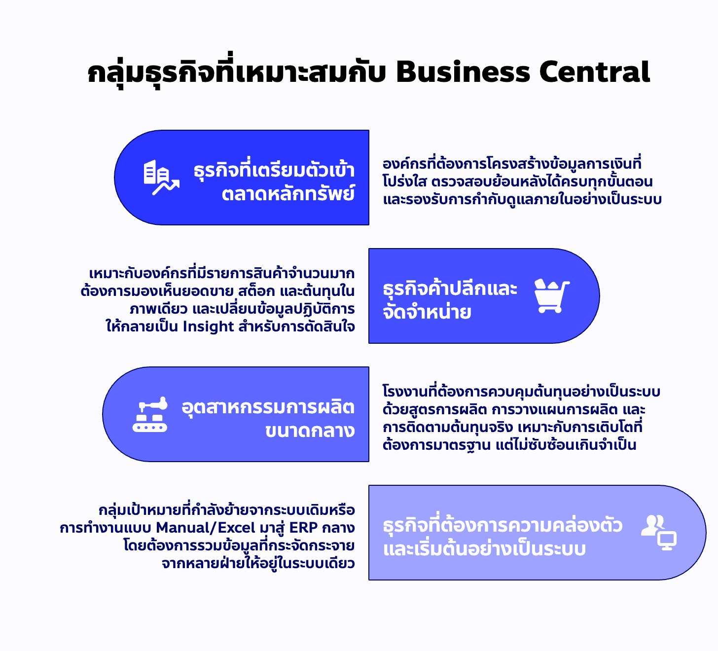Business Central จึงเหมาะกับธุรกิจในกลุ่มต่อไปนี้