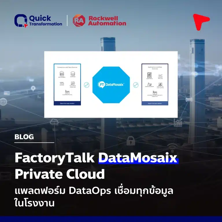Quick Transformation คือพันธมิตรของ Rockwell Automation และ Microsoft ที่เชี่ยวชาญด้านการออกแบบและติดตั้งระบบ FactoryTalk® DataMosaix™ พร้อมทั้งบริการเชื่อมต่อกับ ERP, MES และระบบ Automation อื่น ๆ ในโรงงาน
