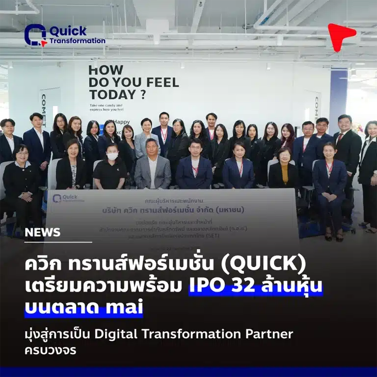 ควิก ทรานส์ฟอร์เมชั่น (QUICK) เตรียมความพร้อม IPO 32 ล้านหุ้น บนตลาด mai มุ่งสู่การเป็น Digital Transformation Partner ครบวงจร