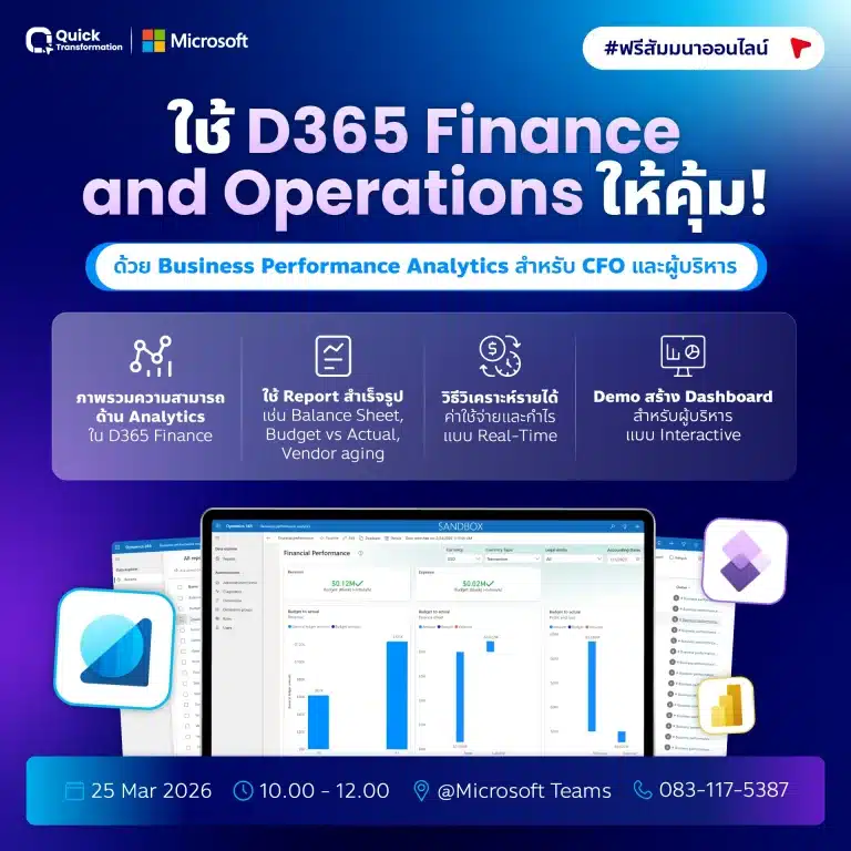 สัมมนานี้ Quick Transformation จะพาคุณรู้จักและใช้งาน Business Performance Analytics บน D365 Finance and Operations ให้คุ้มขึ้น