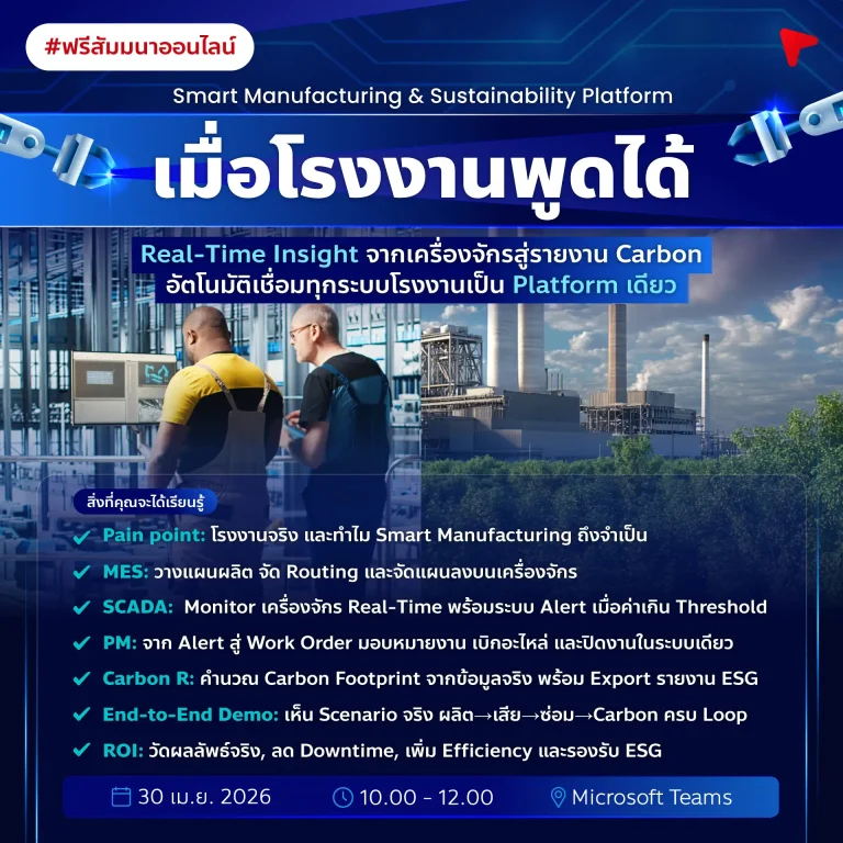 สัมมนาครั้งนี้ Quick Transformation จะแสดงให้เห็นว่า Platform ที่เชื่อม MES, SCADA, PM และ Carbon R เข้าด้วยกันนั้นทำงานอย่างไรในทางปฏิบัติ ไม่ใช่แค่ในทางทฤษฎี